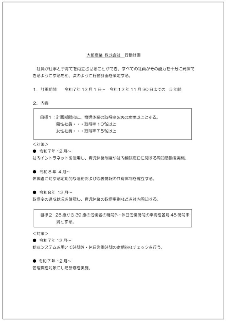 このたび当社では、従業員の仕事と子育ての両立に向けて、